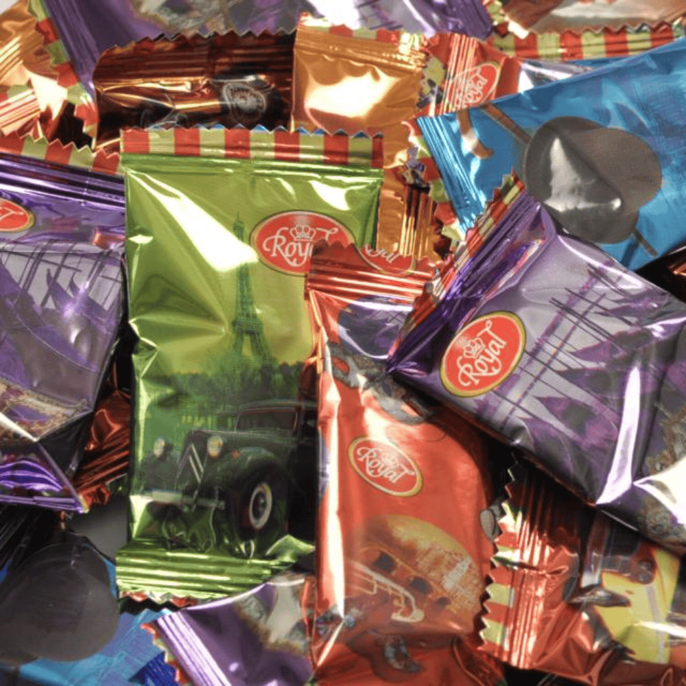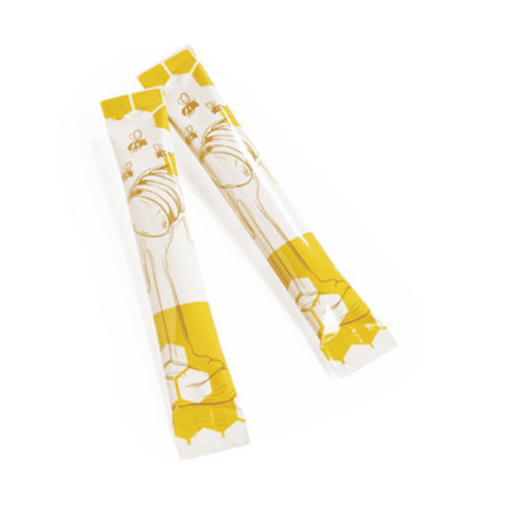 80 stuks in aluminium verpakte honingstaafjes van 8 gram.