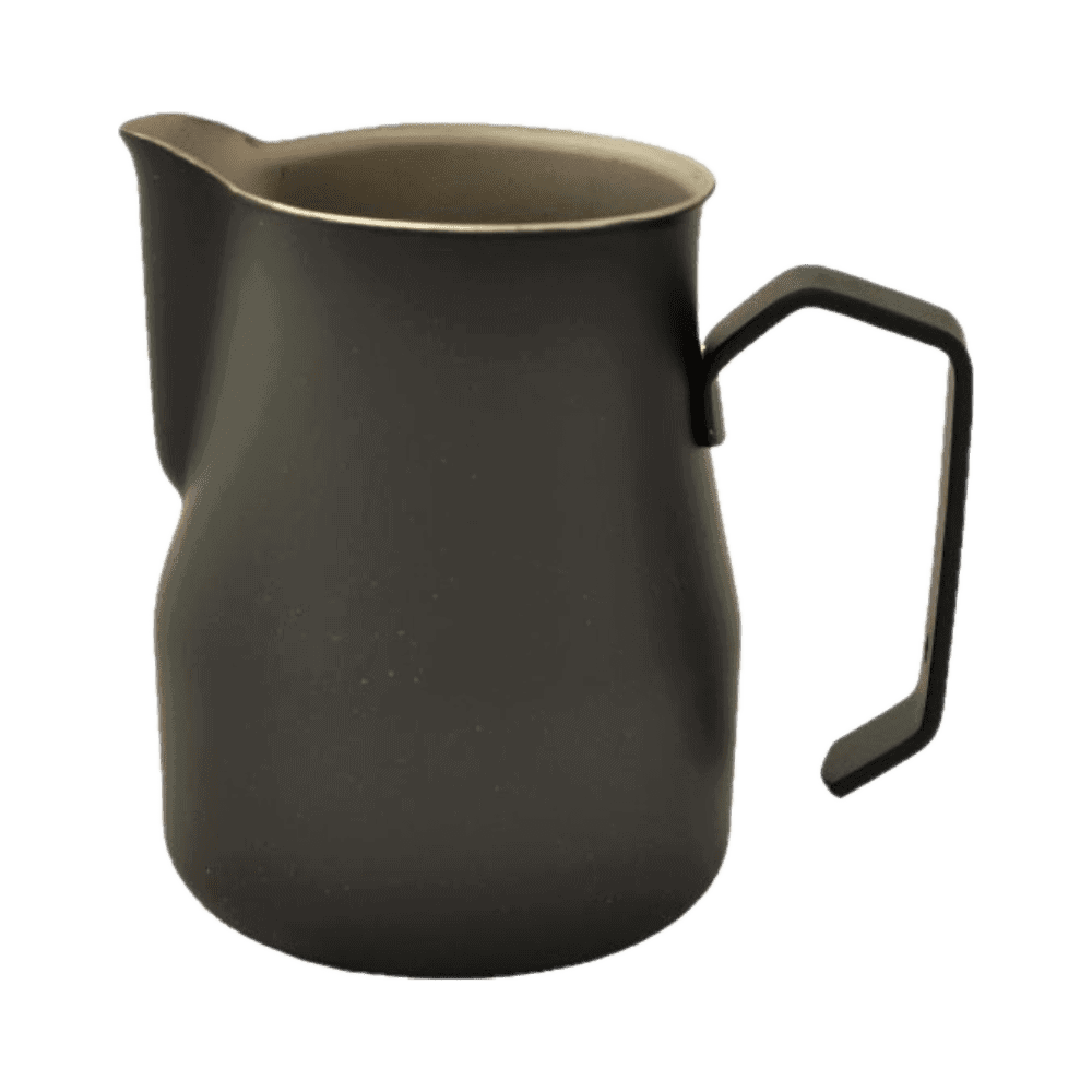 Het onmisbare stukje gereedschap voor de barista! Deze cappuccino melk kan is goed voor 350ml melk en blijft mooi dankzij de extra dikke rvs uitvoering in zwart. Ook is deze voorzien van de Motta schenktuit voor de volmaakte schuimlaag en figuren